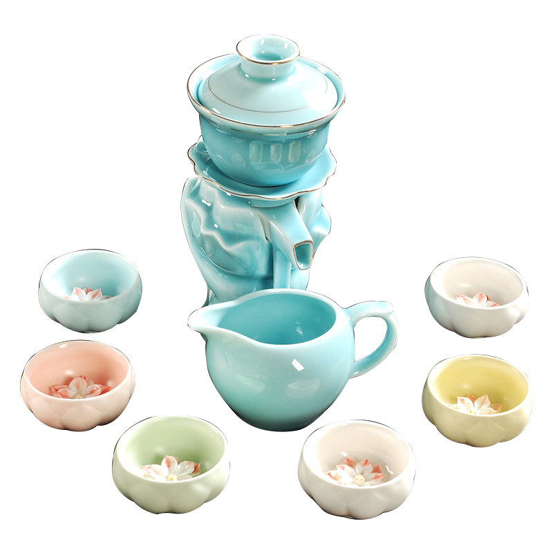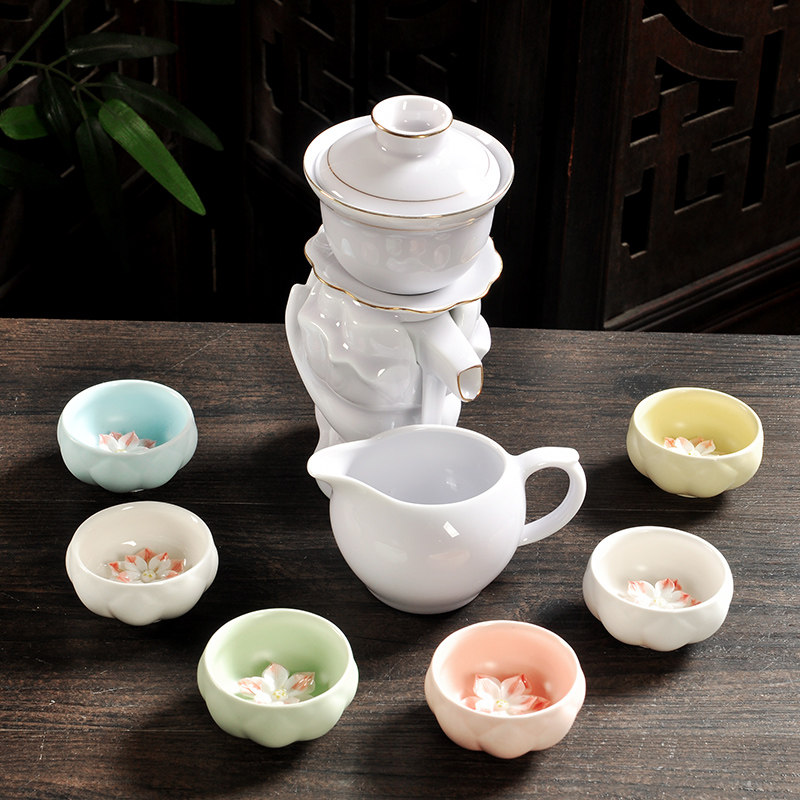 Tea set household simple semi-automatic lazy anti-hot kung fu tea cup ceramic teacup large-scale tea cup