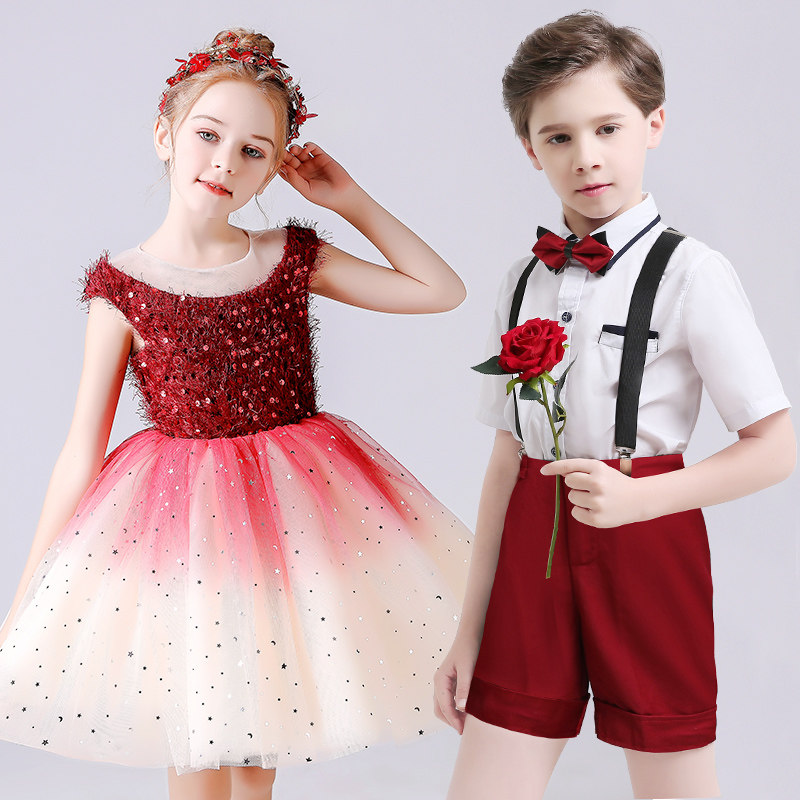 National Day Children's Choir Performance Costume Primary and Secondary School Students Kindergarten Boys and Girls Recitation Performance Holding Baby Bag Pants Dress
