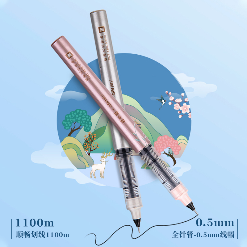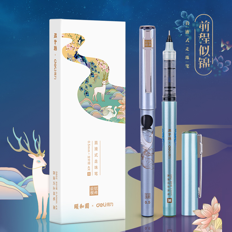 (Summer Wonderland) Deli Straight Liquid Ball Pen Summer Palace Series Gel Pen 0 5 Full Needle Tube Small Fresh Black Water Pen Students Use Straight Liquid Pen Chinese Style Creative Signature Pen Gift