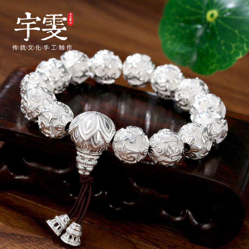 Six-character truth mini bright silver model (Buddha beads about 6mm weight about 26 grams)with certificate delivery Six-character truth small bright silver model (Buddha beads about 8mm weight about 31 grams)with certificate delivery Six