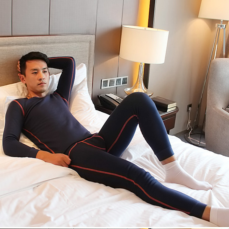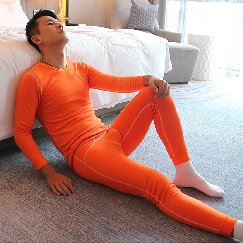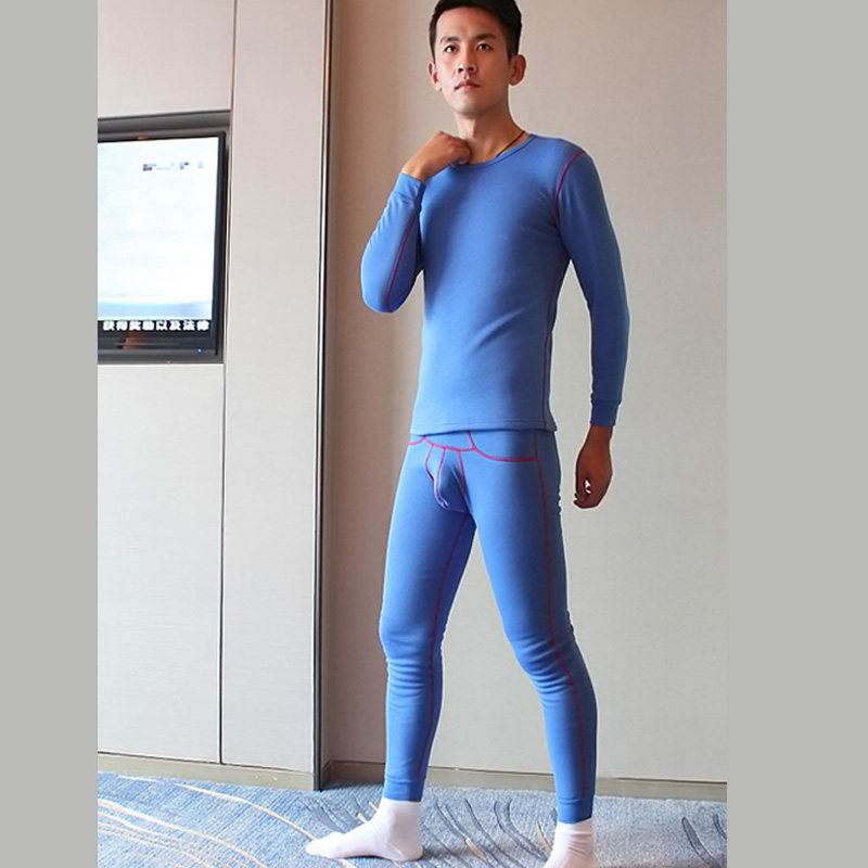 Huajielong men's thermal underwear suit pure cotton plus velvet thickened tight elastic round neck solid color cotton autumn clothes and long johns
