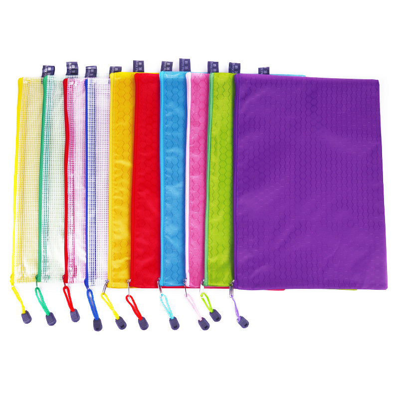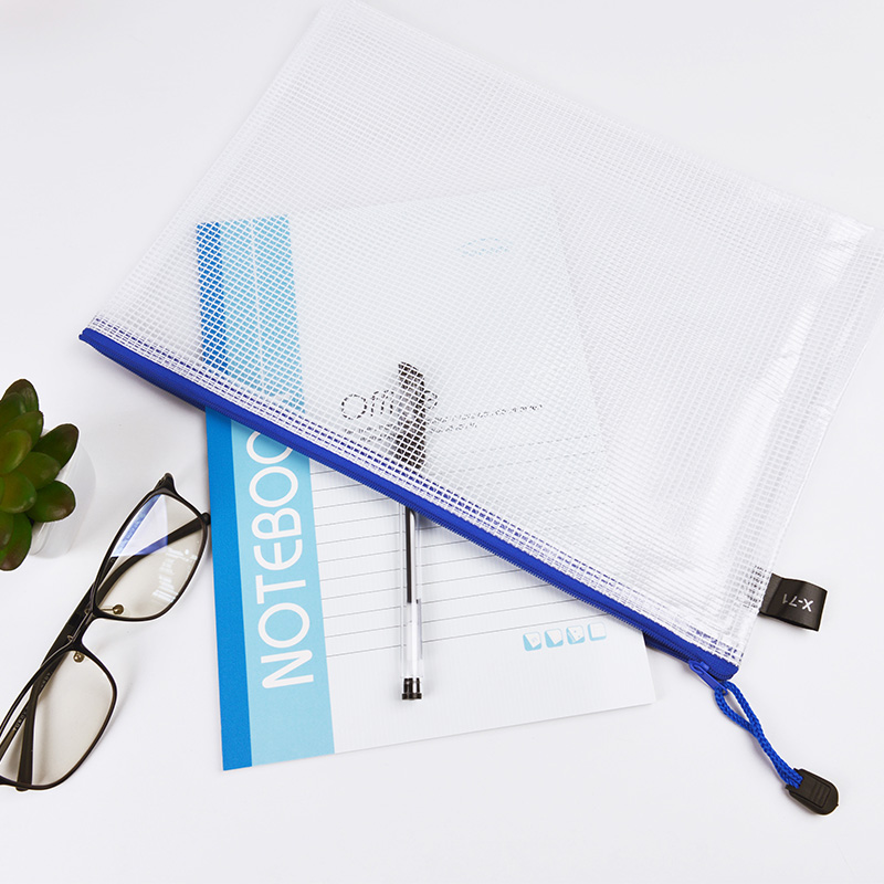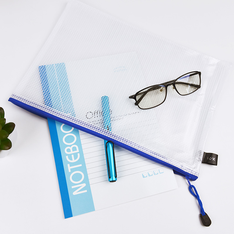 Transparent grid zipper waterproof bag student test bag office handbag papers football file bag customized