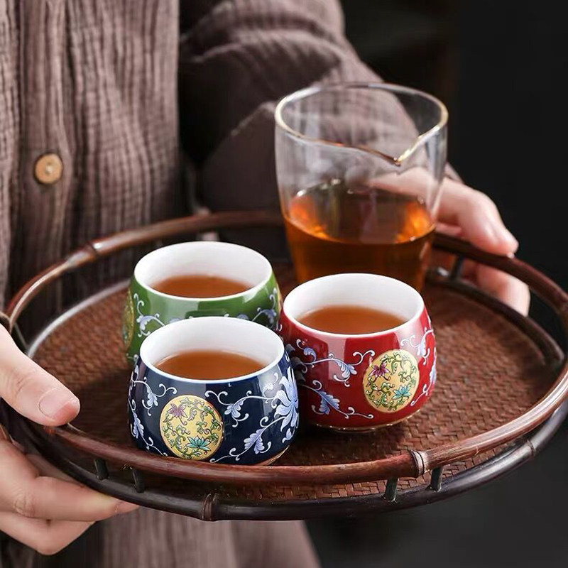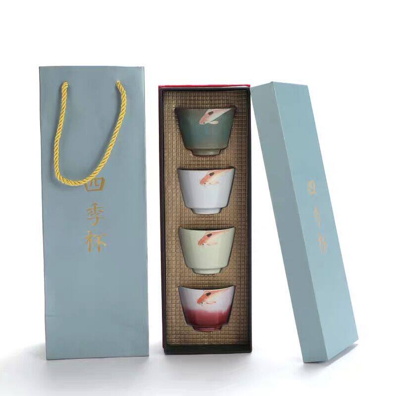 Wuwu kiln egg-shaped cup set (with gift box) Ruihe kiln yellow cup set (with gift box) Wuwu kiln petal cup set (with gift box) Ruihe kiln green cup set (with gift box) Four-phase straight cup set