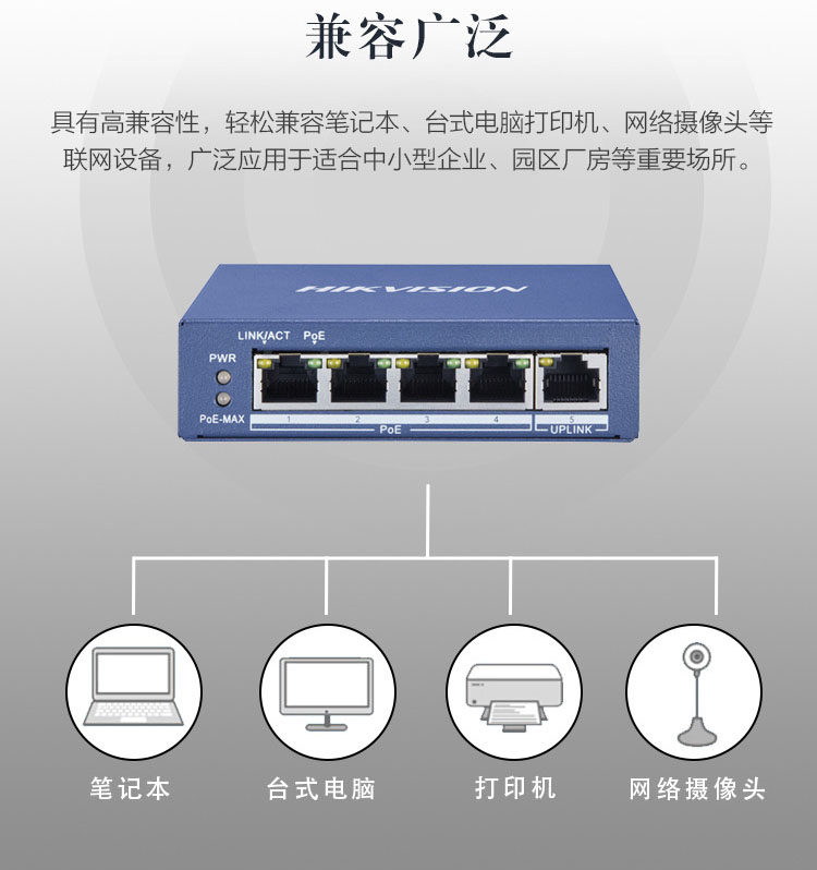 Hikvision full gigabit POE long-distance 4-port 8-port 16-port switch national standard 48V power supply hub shunt