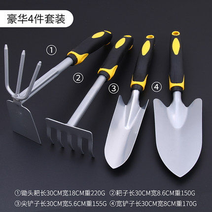 Silver white wide shovel silver white narrow shovel (large number thickened) Wide shovel (large number thickened) narrow shovel (large number thickened) Two-end hoe (large number thickened) Five teeth rake Large thickened 3 pieces (1 shovel 1)