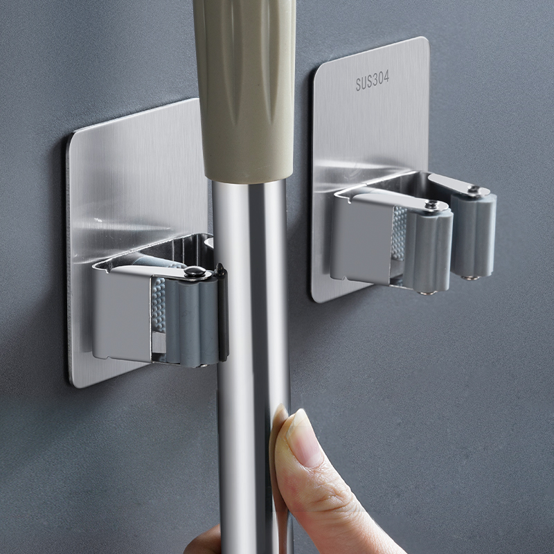 Bathroom storage artifact mop hook Punch-free stainless steel broom pylons Strong sticky hook Wall mop clip