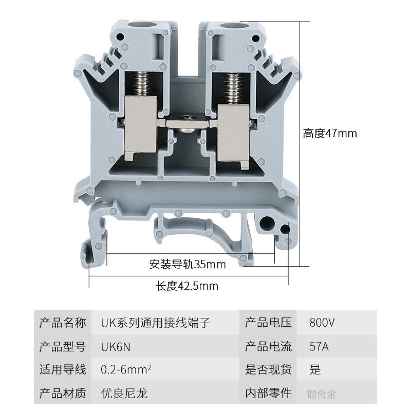 Wiring UK6N type row rail universal UK-6N terminal block terminal block current 6 wiring flat mode