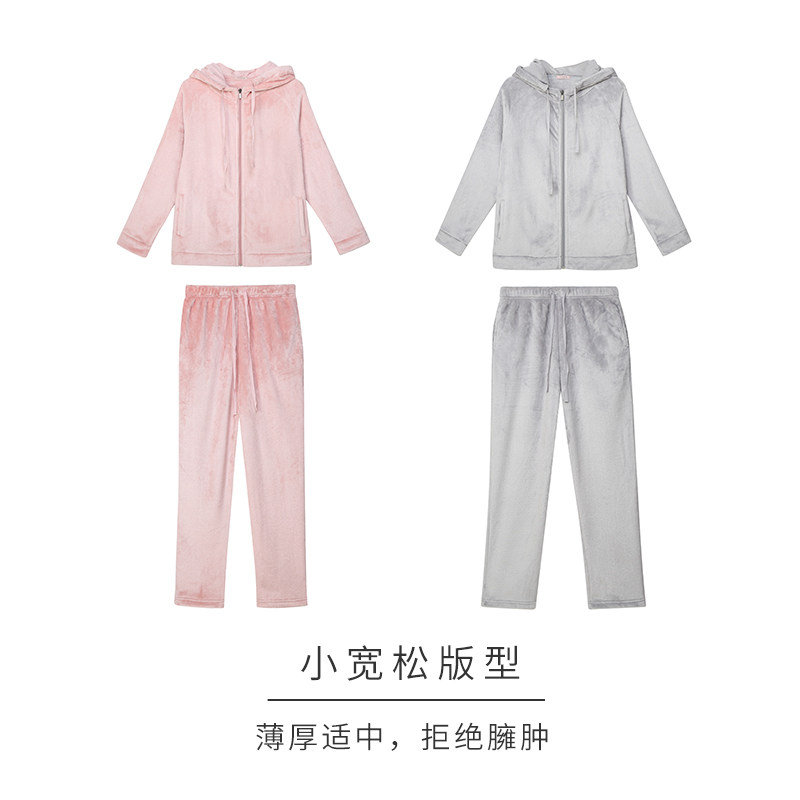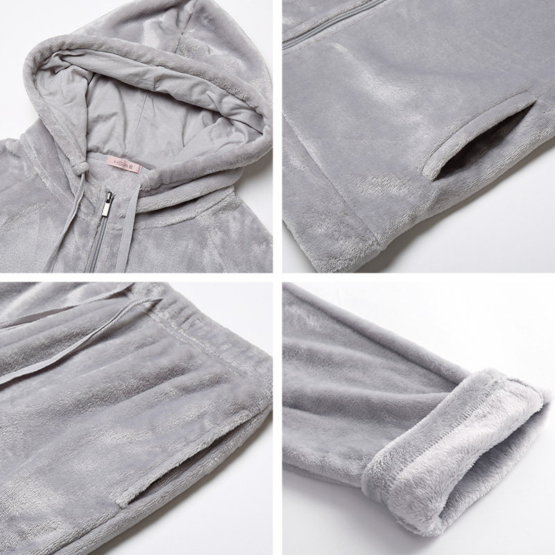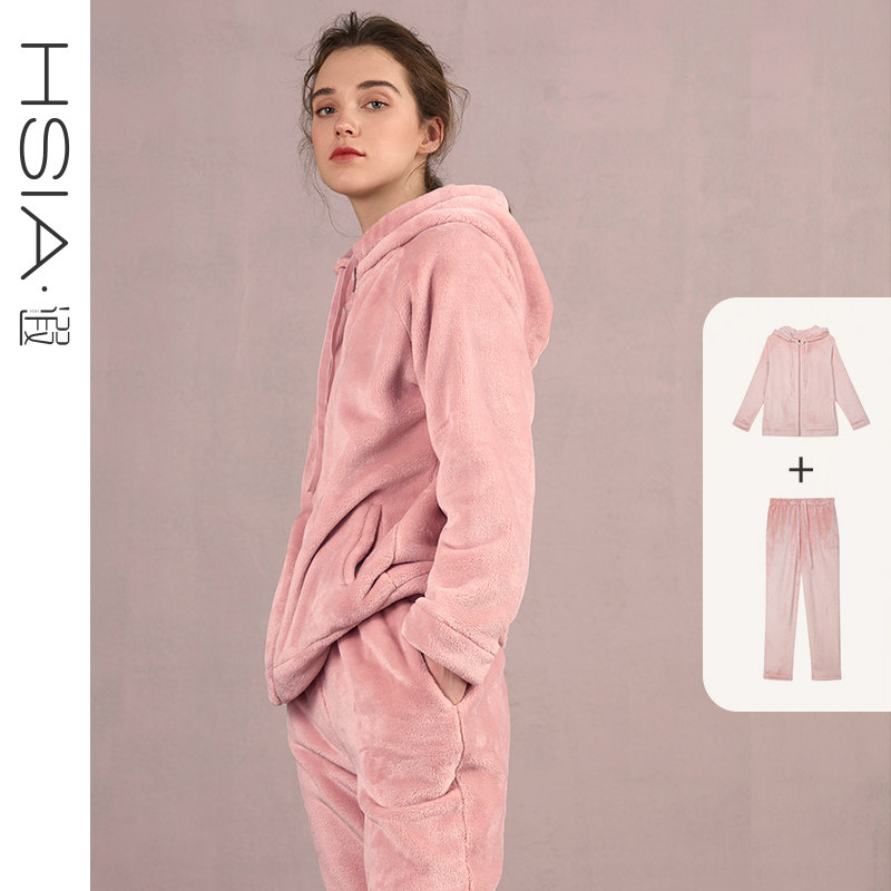 HSIA reverie warm and outer zipper pajamas set sports hood flannel home suit female