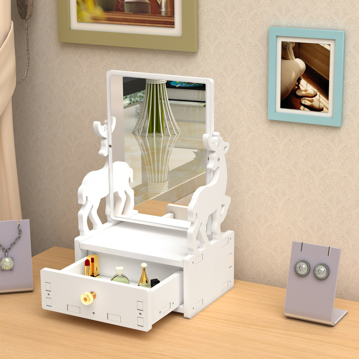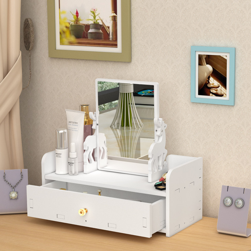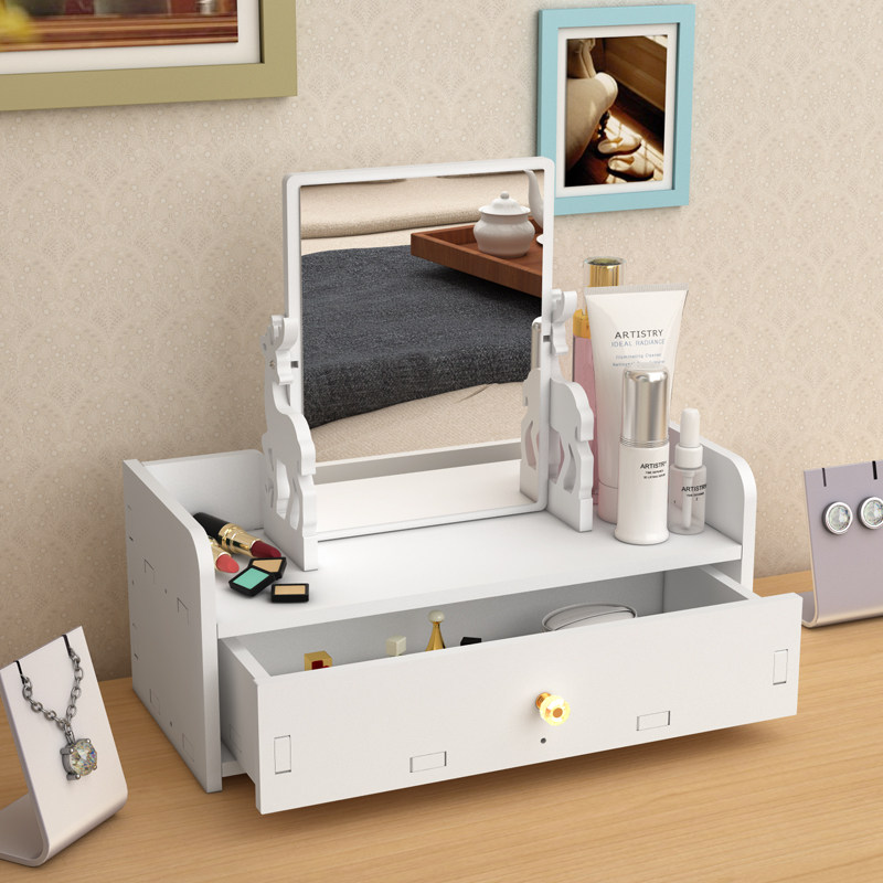 Cosmetic Storage Box Desktop Skin Care Products Lipstick Red Shelf With Mirror Teen Student Dormitory Desktop Dresser