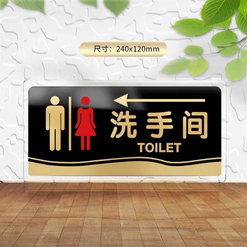 Acrylic toilet to the right, the toilet to the left, the door sign, the sign, the toilet, please save water, the sign is careful to slide, be careful to meet the glass, and the warm reminder slogan