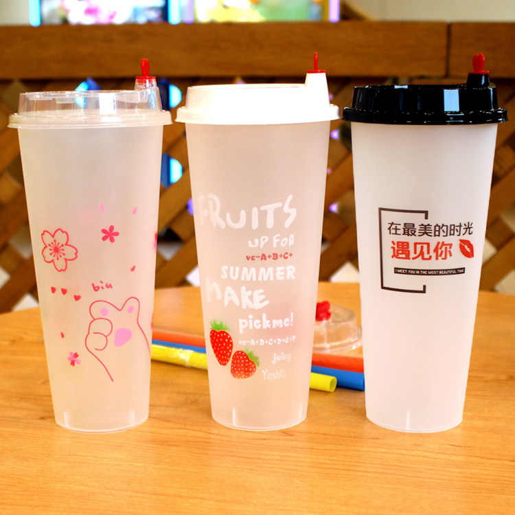 Frosted injection milk tea cup 90 caliber disposable drink cup net red cup with lid commercial 700ml500 custom