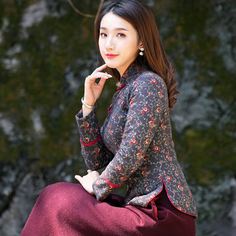 Yunya Tang suit women's winter padded jacket tea suit Chinese style women's cheongsam style top Chinese style buckle retro young padded coat