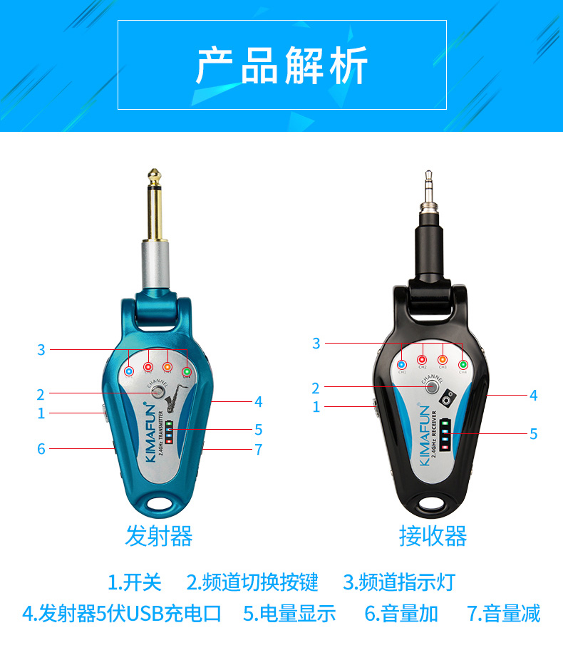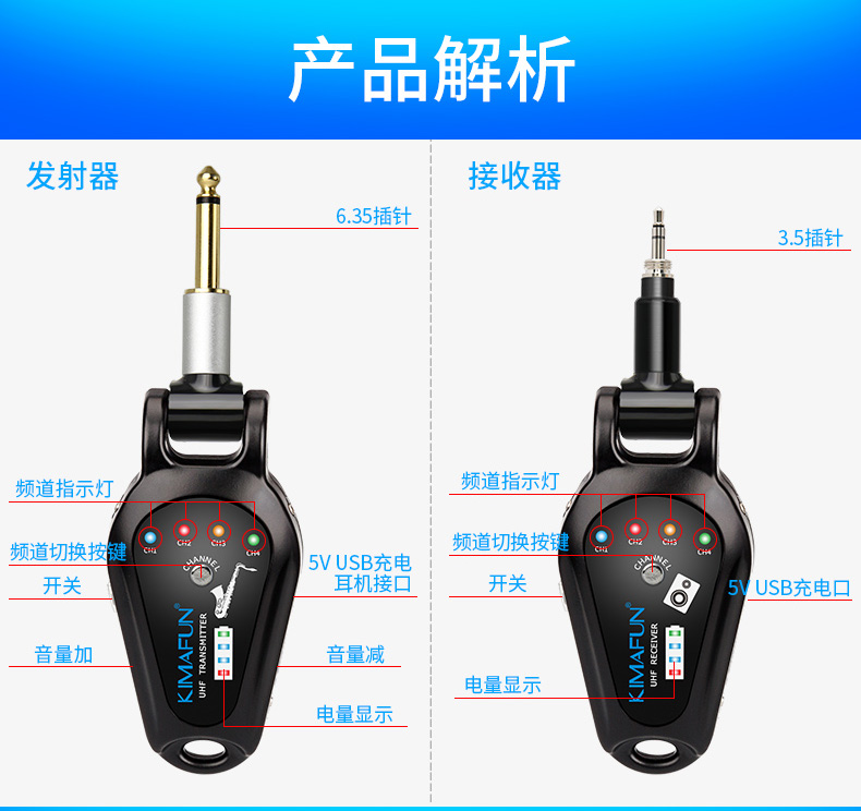 Jingmai Wind KIMAFUN musical instrument electric blowpipe guitar bass wireless receiver transmitter Bluetooth audio transmission