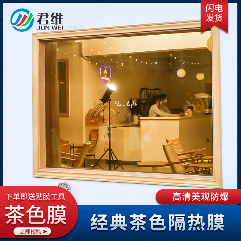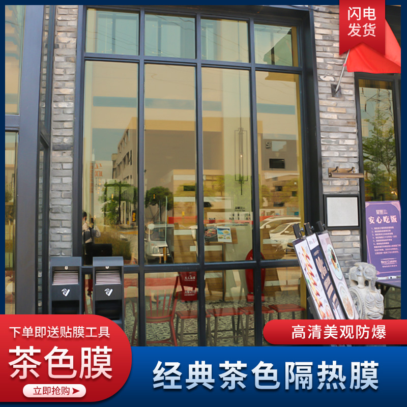 Tea colour transparent glass sticker shop insulation sunscreen anti-UV window sticker window sticker glass adhesive film