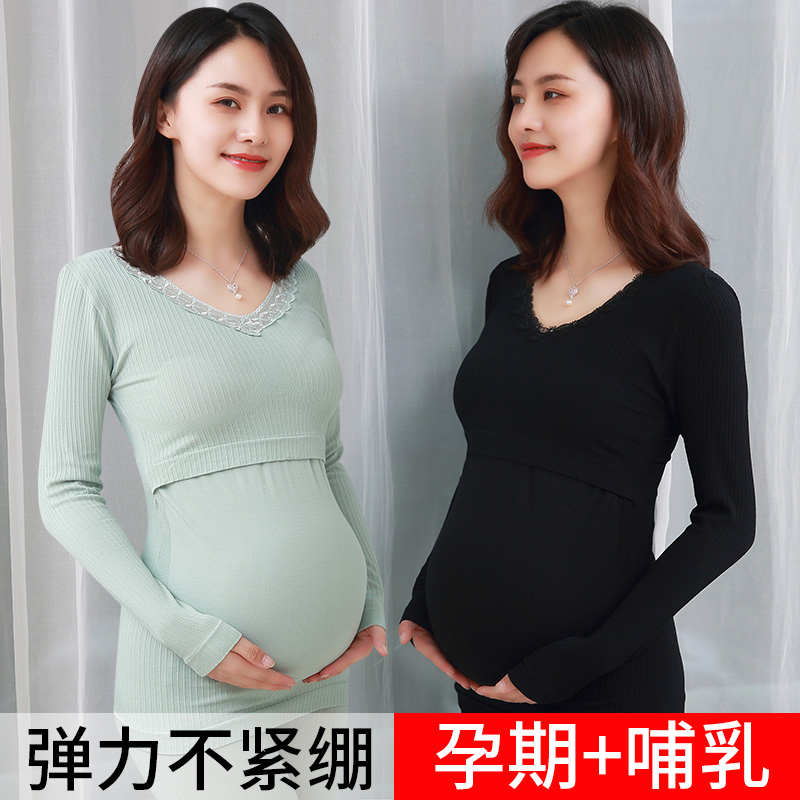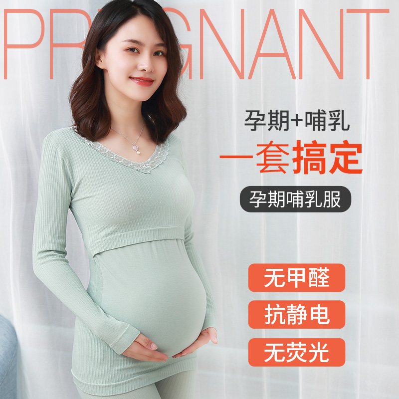 Pregnant women's autumn clothes sanitary pants suit with lactation pyjamas during pregnancy Autumn Winter Fever Jersey Breastfeeding Non Cotton Sweatshirt