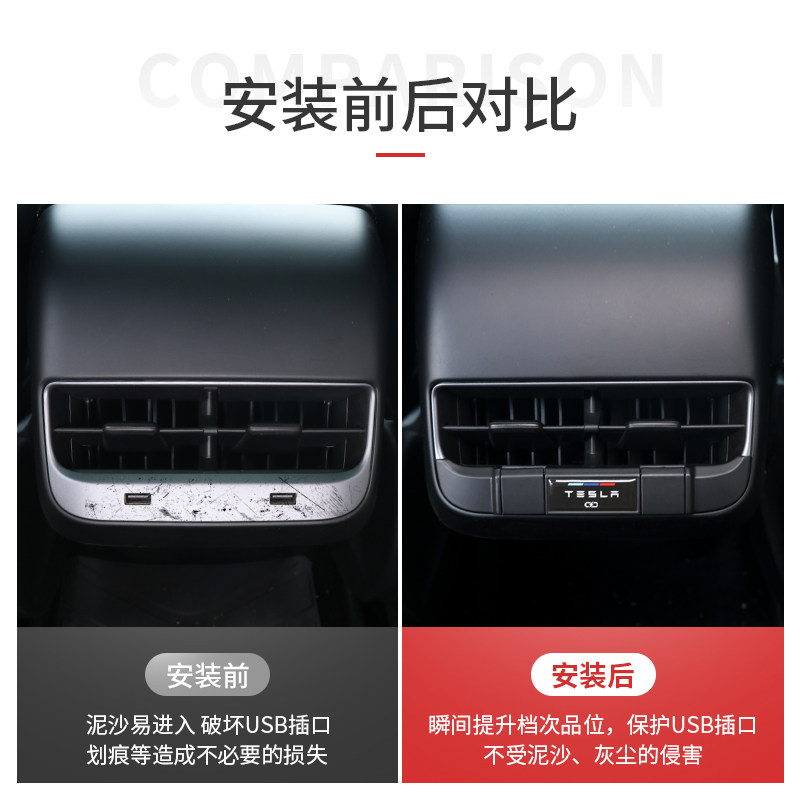 Suitable for Tesla Tesla model3Y rear air outlet USB charging special protection cover retrofitting accessories