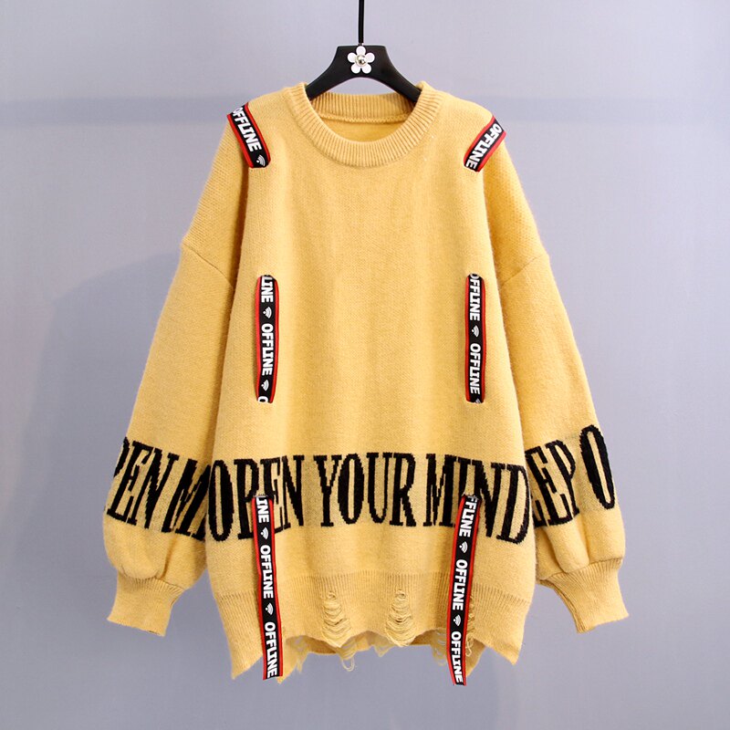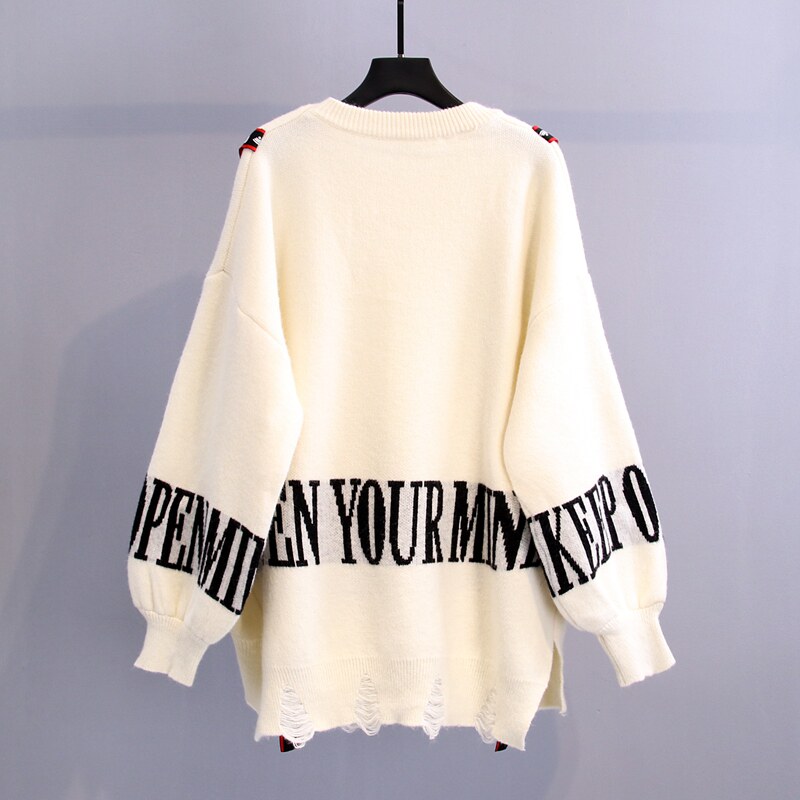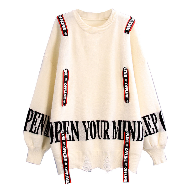 Western style age-reducing pullover sweater women's loose outer wear 2022 new autumn and winter Korean version of the hole letter lace-up sweater