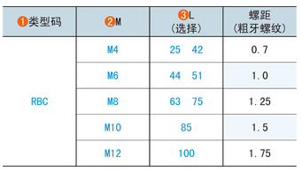 RBC-M4-L25RBC-M4-L42RBC-M6-L44RBC-M6-L51RBC-M8-L63RBC-M8-L75