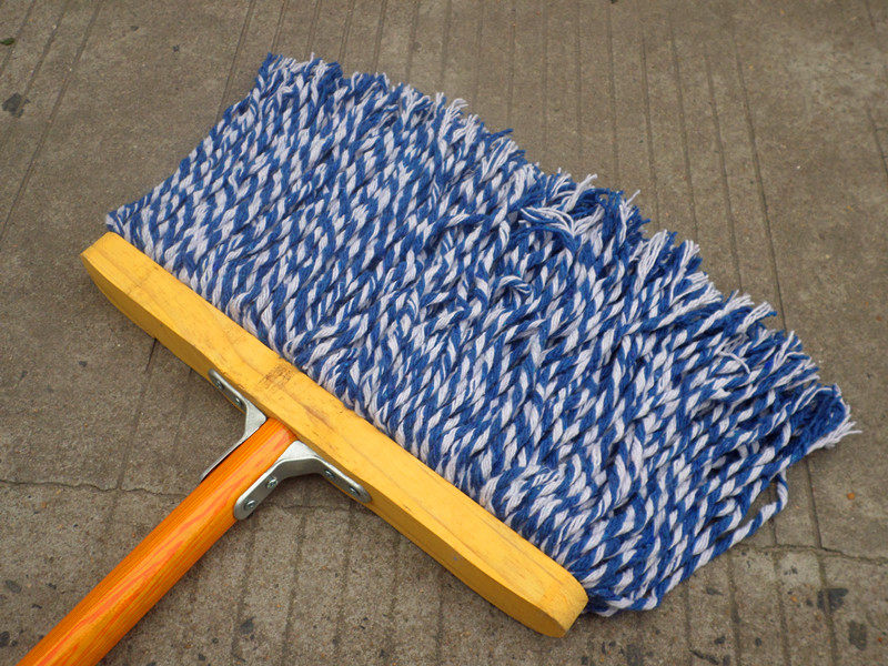 Absorbent cotton thread width mop durable abrasion resistant flat wire rope handmade wooden handle mop