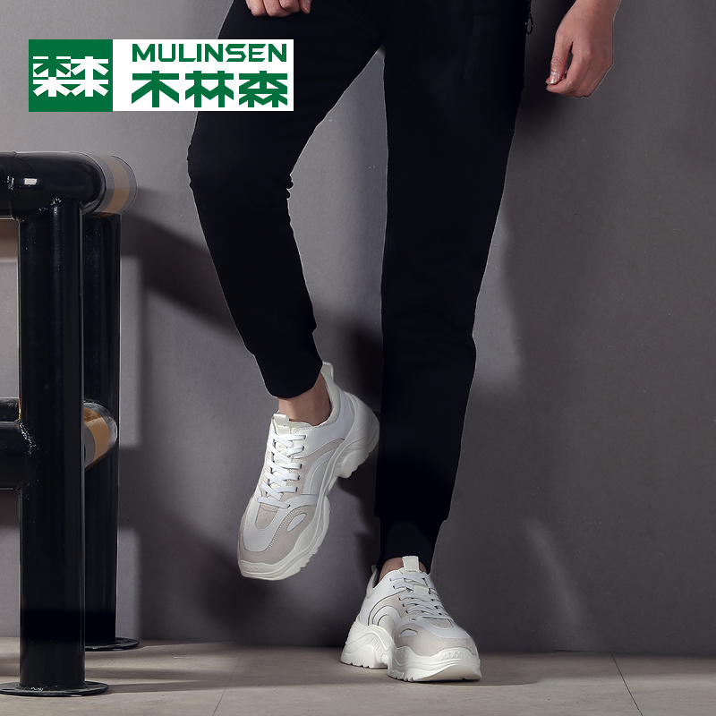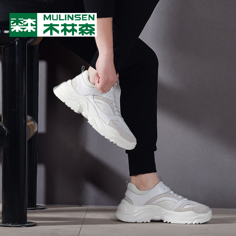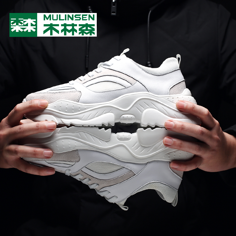 Mulinsen Men's Shoes 2022 New Genuine Leather Casual White Shoes Men's Breathable Sports Trendy Shoes Versatile Net Red Daddy Shoes