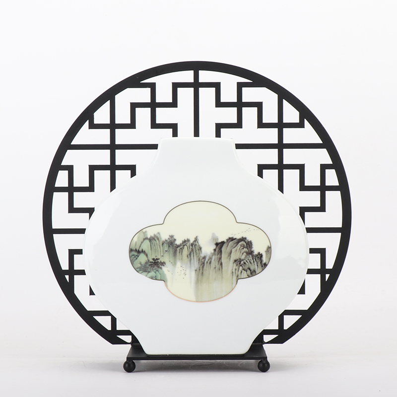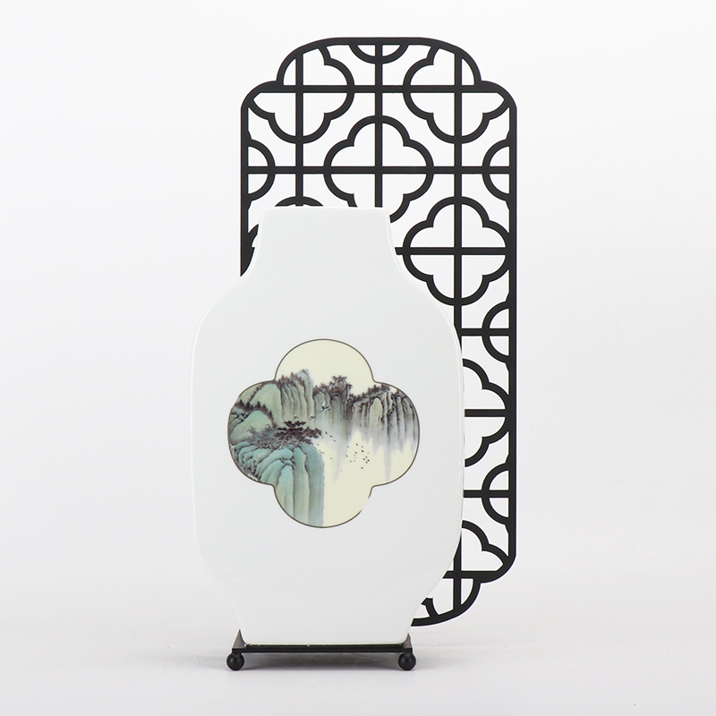Modern new Chinese Zen ceramic decoration creative metal living room porch soft decoration flower model room decoration