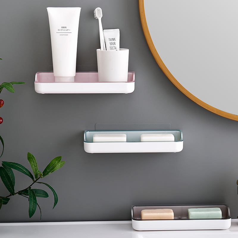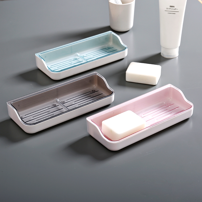 Soap Box Suction Cup Wall-mounted Home Double G Soap Box Creative Drain Free Punching dressing room Putting Hood Shelf