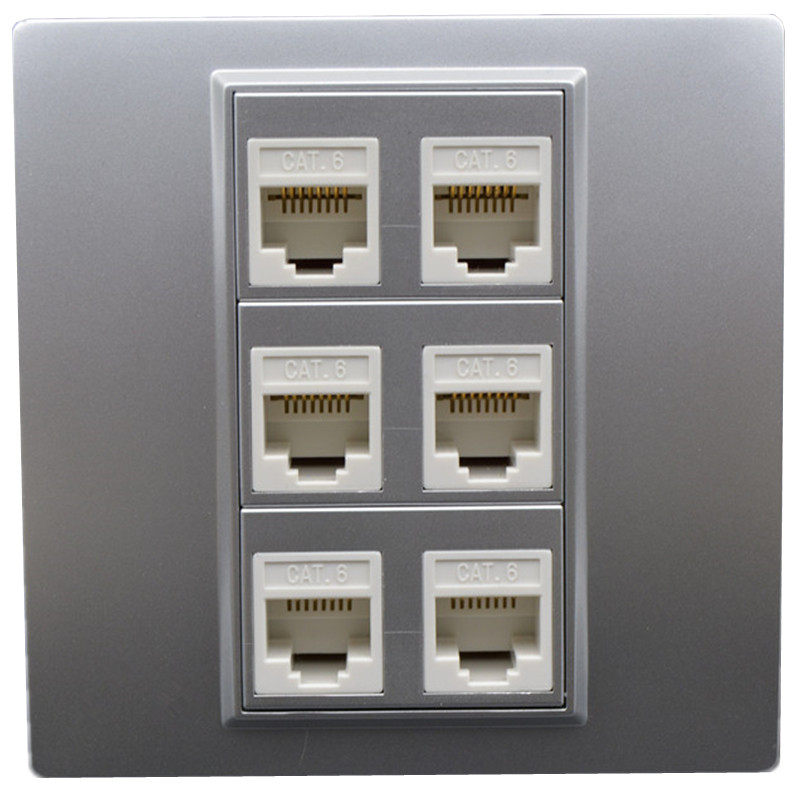Silver Six Type Network Cable Socket 86 Type Concealed 6-port one thousand trillion Internet c Computer at6 Six Internet Interface Information Panel