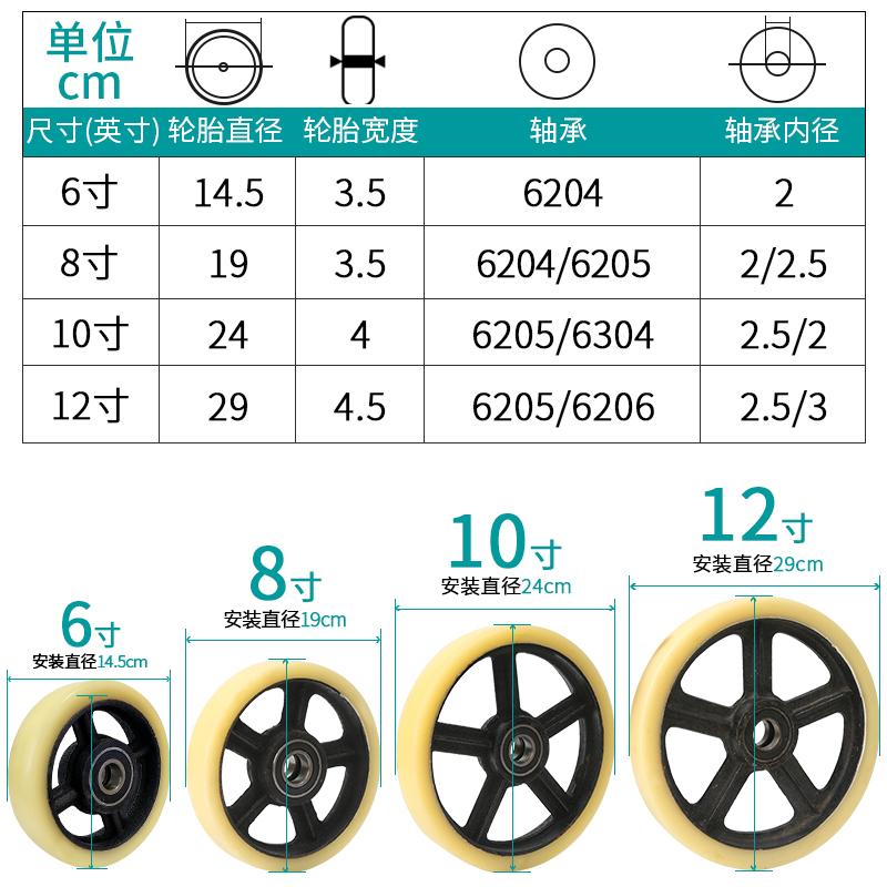6 inch core nylon wheel 6204 bearing 8 inch core nylon wheel 6205 bearing 10 inch core nylon wheel 6205 bearing 10 inch core nylon wheel 6304 bearing 12 inch core nylon wheel 6206 bearing 6 inch core rubber wheel 6204 bearing 8 inch core rubber wheel 6205 bearing 8 inch core rubber wheel 6204 bearing 10 inch core rubber wheel 6205 bearing 10 inch core rubber wheel 6304 bearing 12 inch core rubber wheel 6205 bearing 12 inch core rubber wheel 6206 bearing 6 inch all nylon wheel 6204 bearing 8 inch all nylon wheel 6205 bearing 10 inch all nylon wheel 6205 bearing 12 inch all nylon wheel 6205 bearing 8 inch all nylon wheel 6204 bearing 6 inch weight all nylon single wheel 8 inch weight all nylon single wheel 10 inch weight all nylon single wheel 12 inch weight all nylon single wheel