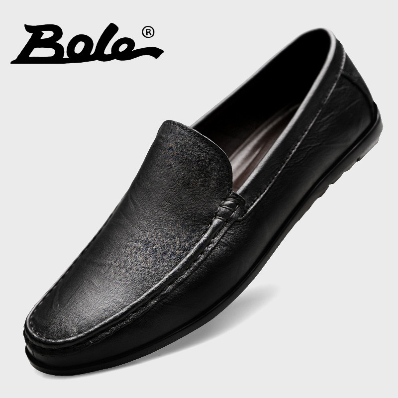 Leather beanie shoes men's spring new men's casual leather shoes men's first layer cowhide middle-aged people soft sole cover feet Dad shoes