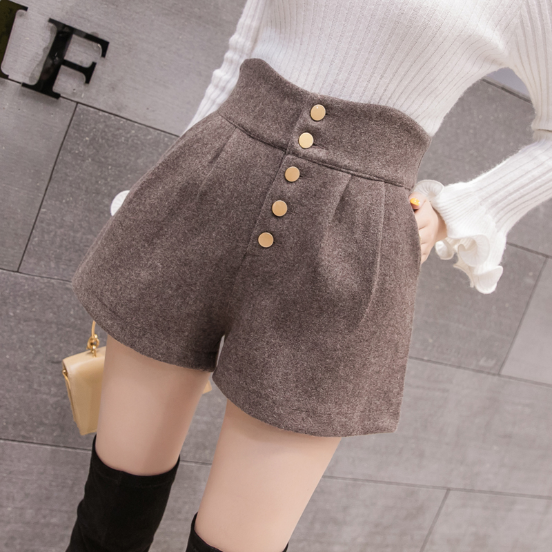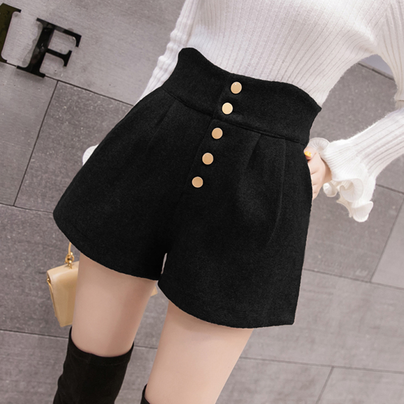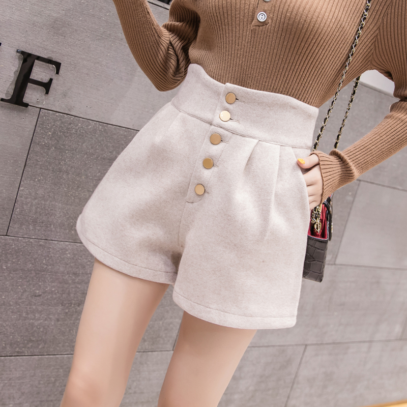 Shorts female autumn Winter models 2022 New outwear Chains High waist beating bottom winter a broad leg loose wool boot pants