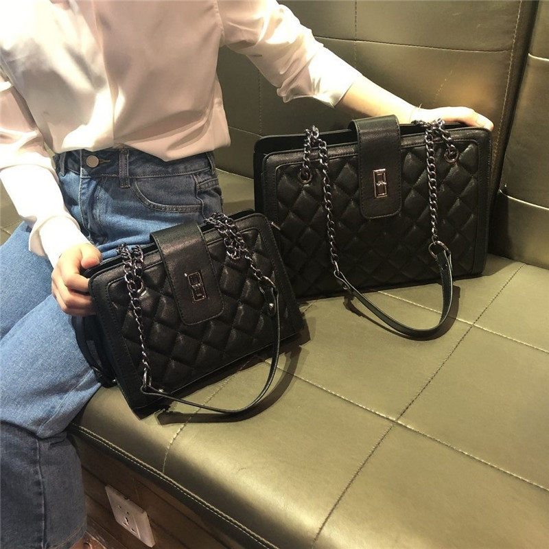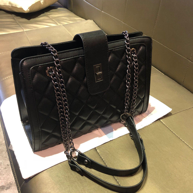 Textured leather bag 2021 new fashion all-match portable shoulder Messenger bag large capacity rhombic chain large bag