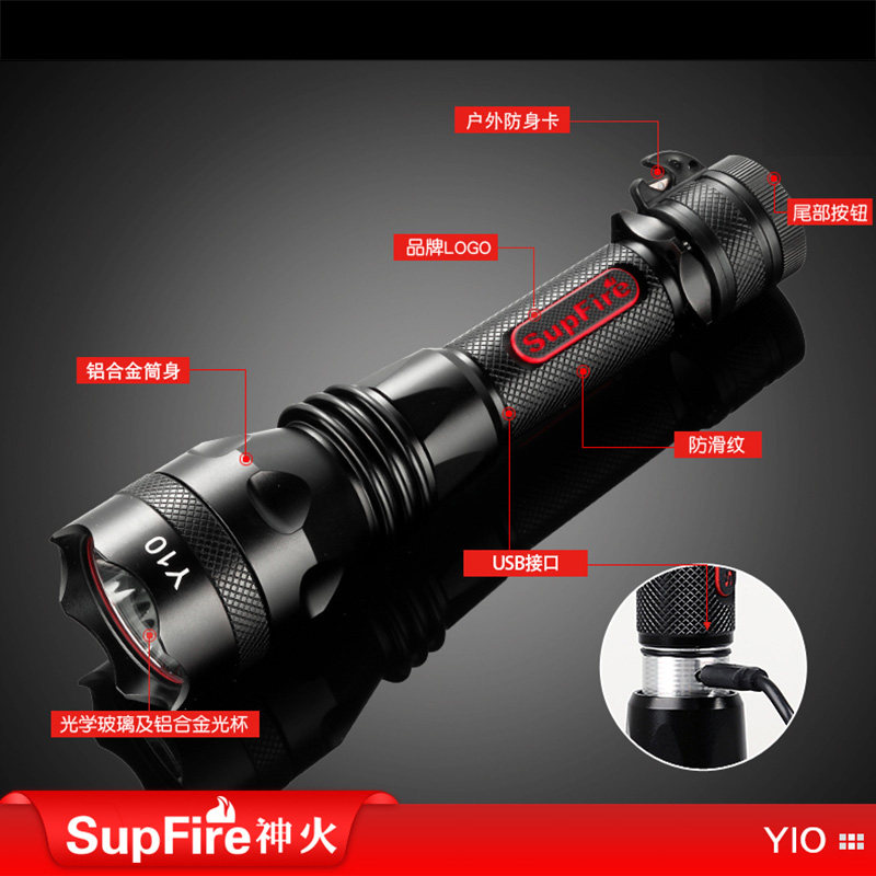 God Fire Y10 Intense Light Flashlight Rechargeable Multifunction Outdoor Spotlight Tactical Afar lighting Yellow light 500 m