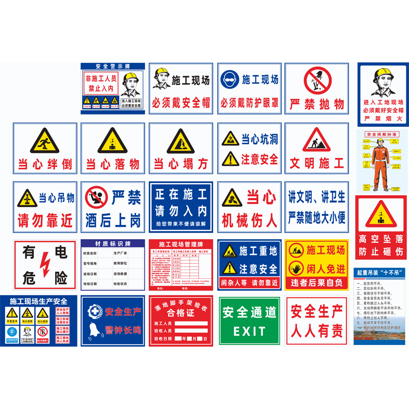 Safety warning sign construction site production safety construction emphasis on safety construction site idle people are exempt from entering the electrical danger is not allowed to enter the construction is strictly forbidden to drink alcohol strictly prohibit thrown objects to talk about civilization and hygiene Strictly prohibit open pot and urinate beware of tripping and beware of hanging objects Do not approach civilized construction Beware of landslide Construction site Must wear safety production Everyone is responsible for entering the construction site Must wear a safety helmet To prevent smashing site warning signs (a full set of 12 sheets) Construction site warning signs (a full set of 28 sheets) Construction site construction five cards and one map (a full set of 6 pieces) Construction of eight members of the job responsibilities (a full set of 8 pieces) PVC plastic board order remark number aluminum plate reflective film next order note number