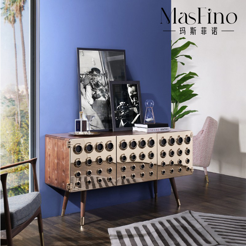 Masfino Modern Simple Stainless Steel Golden Hive Locker Villa Living Room TV Cabinet Nordic