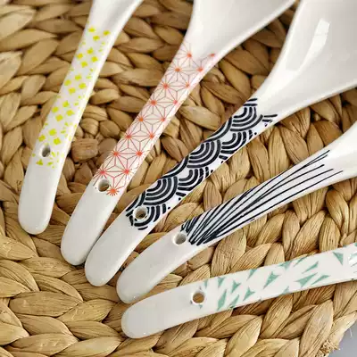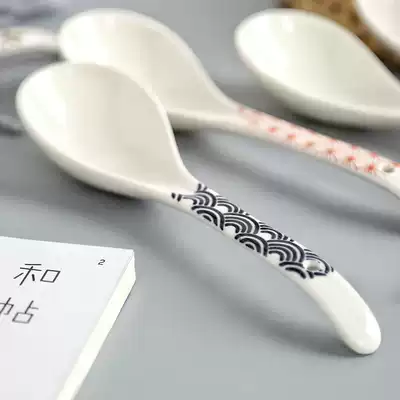 Japanese style household creative personality ceramic long-handled spoon Small fresh underglaze color soup spoon hot pot spoon