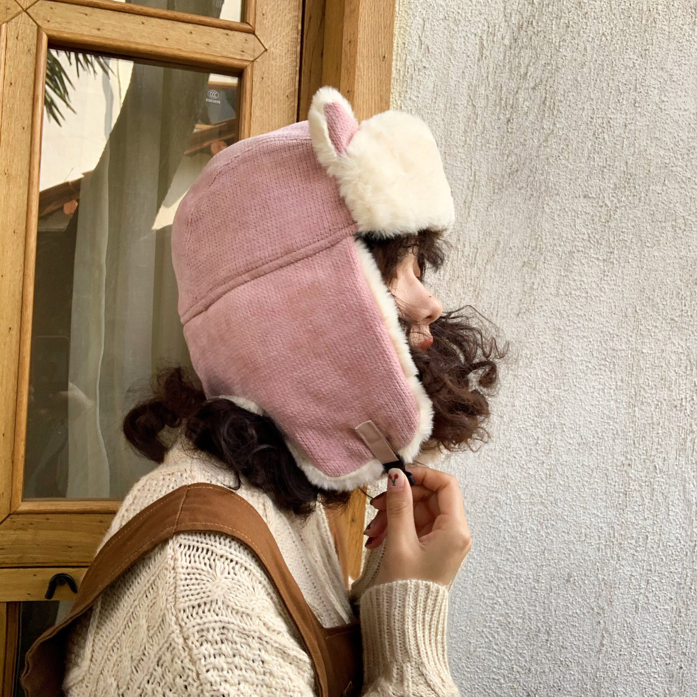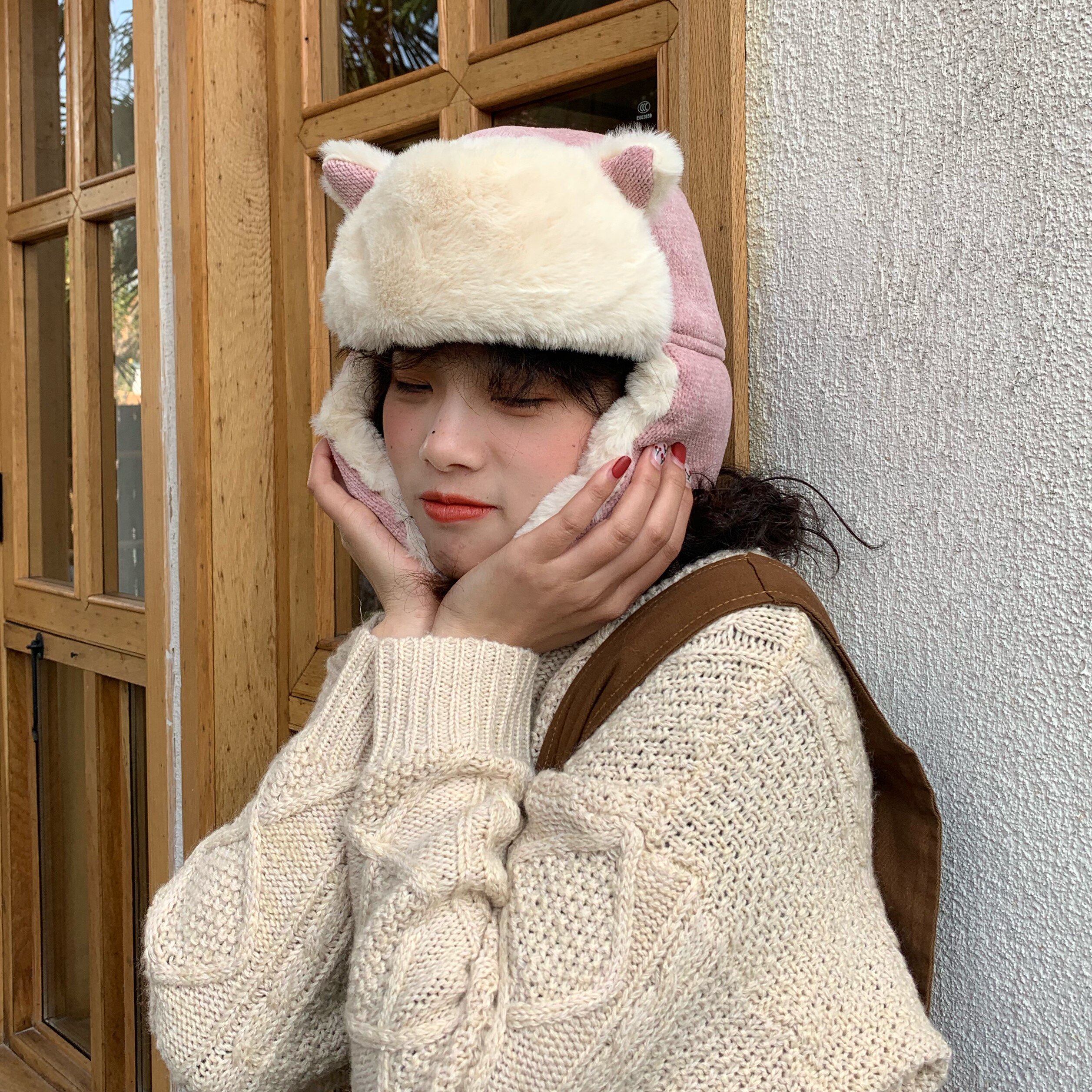 Cat ear Lei Feng cap thickened female warm Han version cute 100 lap fashion winter protective ear plush hat Korean version