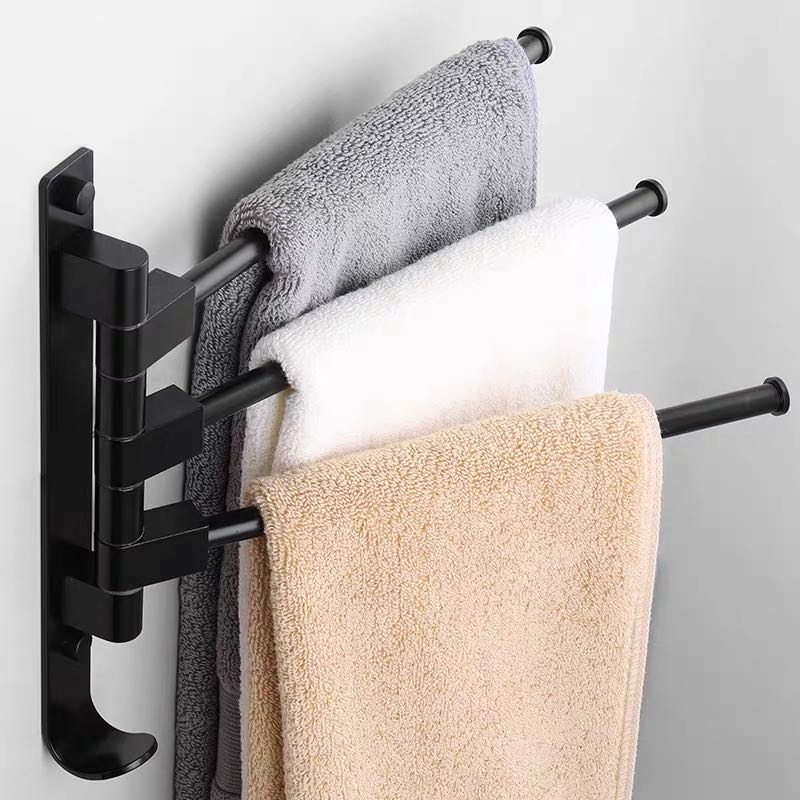 Xinjiang towel rack punch-free space aluminum pylons Powder room shelf folding movable rotating towel bar