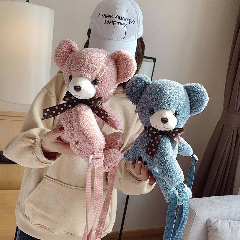 Cute plush bag women's 2021 autumn and winter new Western style teddy bear messenger bag ugly cute lamb wool mobile phone bag