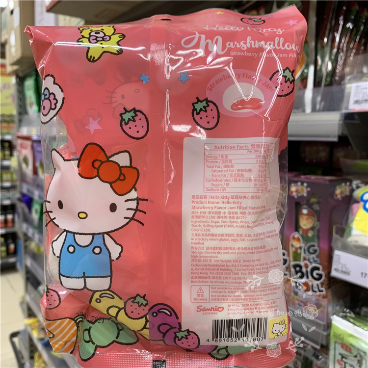 Hong Kong Hello KittyHello Strawberry Sandwich Marshmallow Bag 100g Children's Snacks