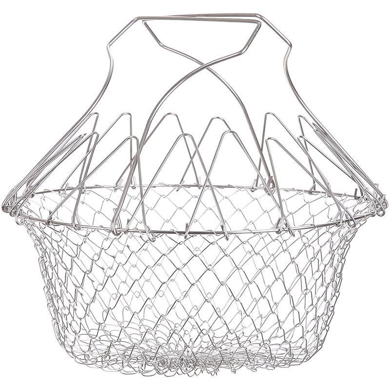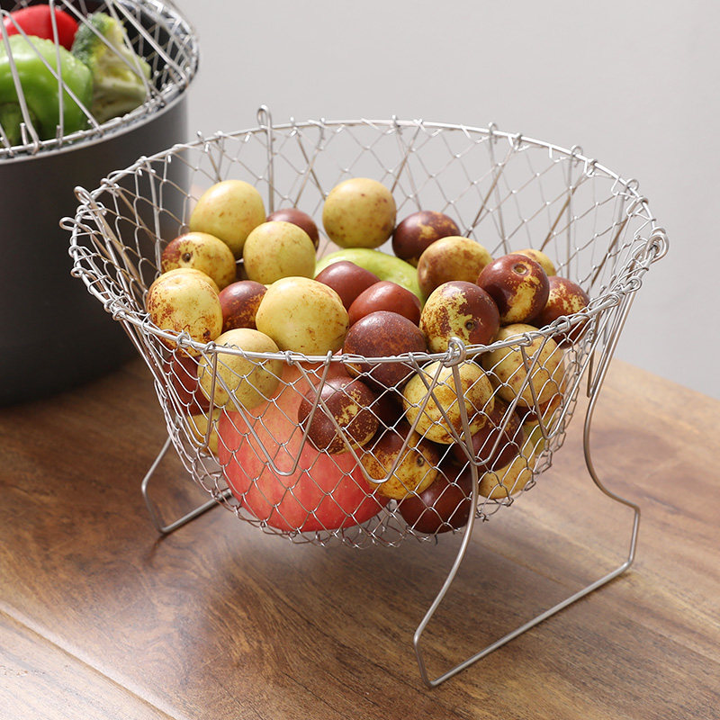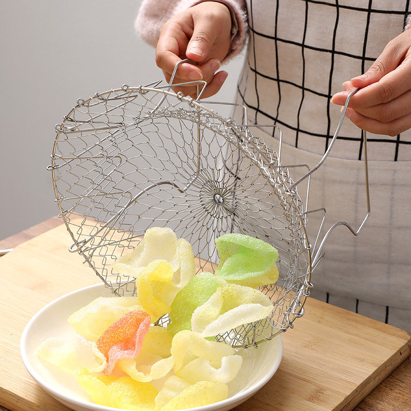 304 Stainless Steel Folds Fold Fried Net Basket Round Telescopic Filter Oil Net Oil Bar Filter Wash Vegetable Drain Blue Cooking Basket