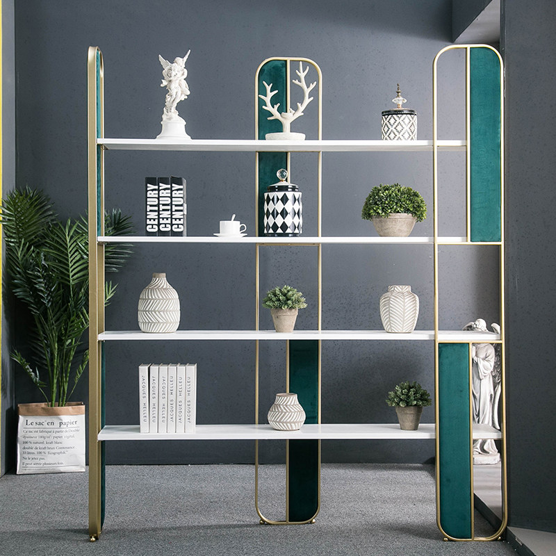 Shelf floor-to-ceiling living room against the wall creative cabinet light luxury metal color decorative iron art display partition bookshelf Nordic