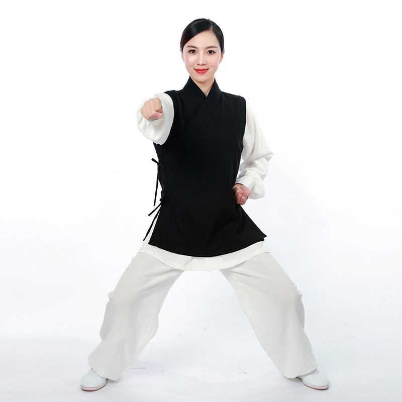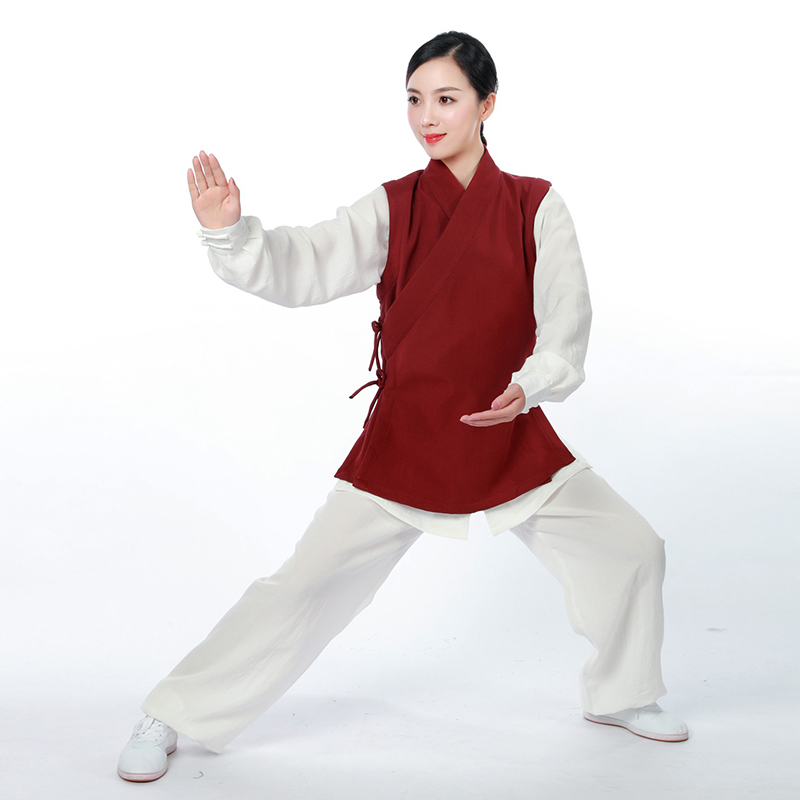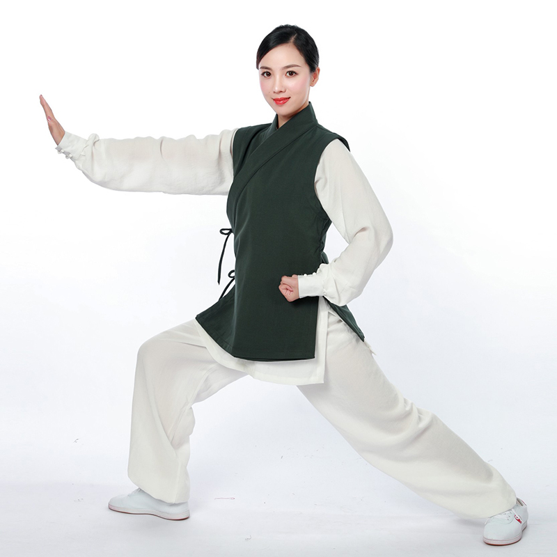 Xiuhua Daoyuan autumn and winter thickened tai chi practice clothes warm double-layer velvet waistcoat oblique collar short vest tai chi suit