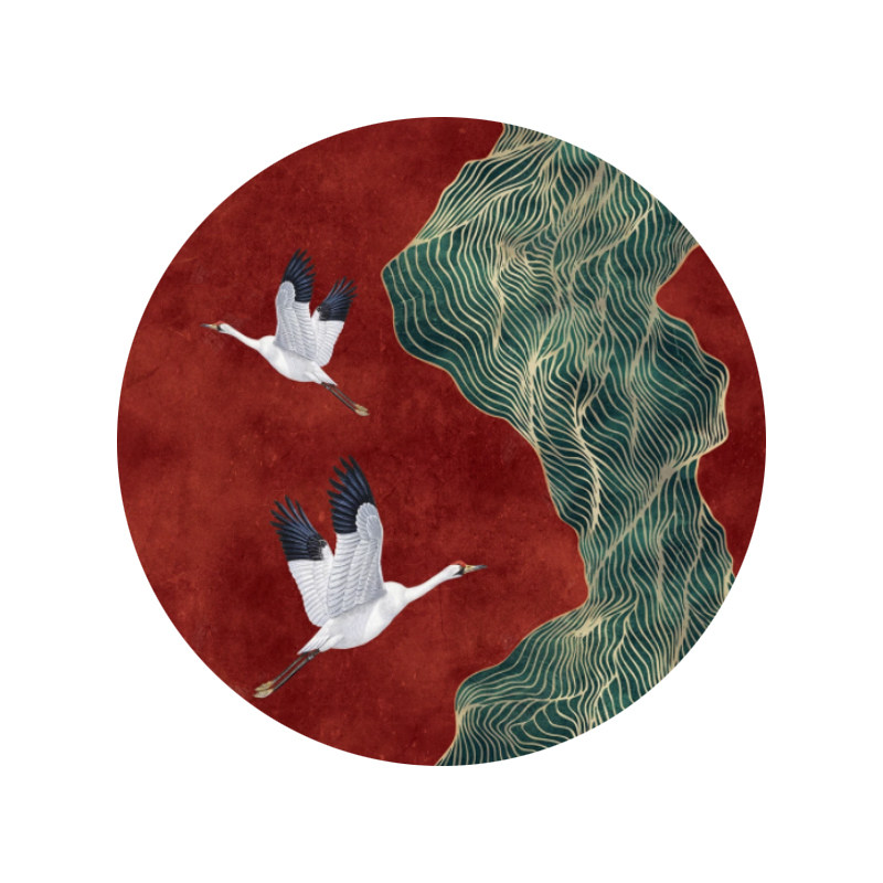 New Chinese round carpet living room carpet luxury study room round carpet style carpet fashion fly crane pattern Chinese style pad