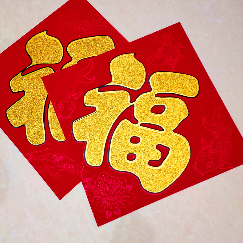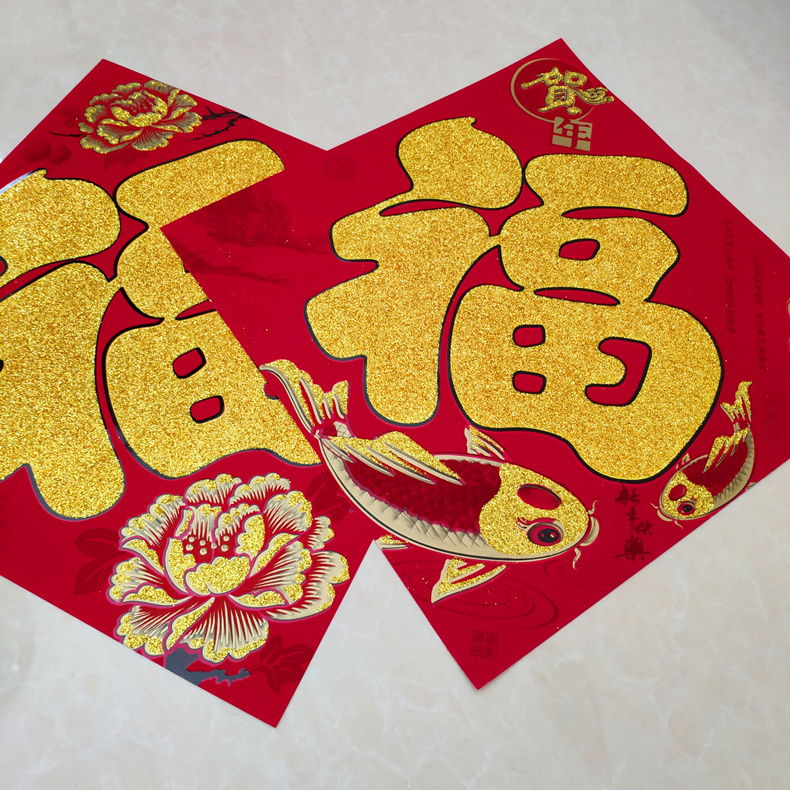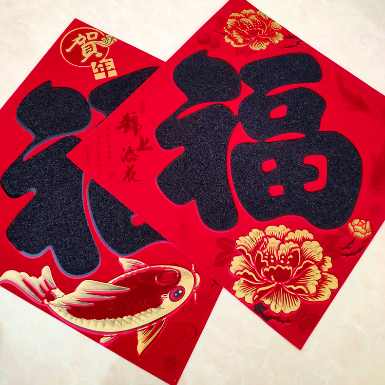 2023 Year of the Rabbit New Year Spring Festival high-end flocking Fu word door stickers large wall stickers window grilles housewarming new house door core