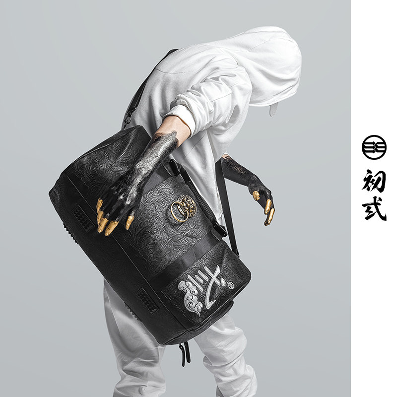 Yuan Yu Chinese Age Retro Press Lion Head Large Capacity Travel Single Shoulder Slip Backpack 42007