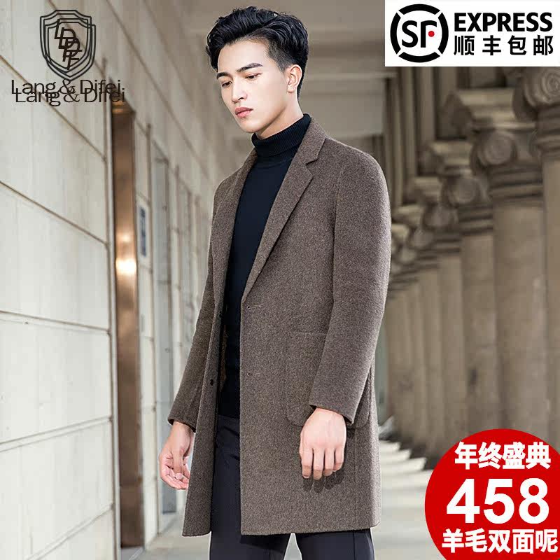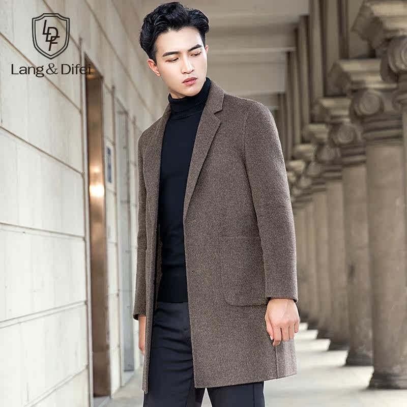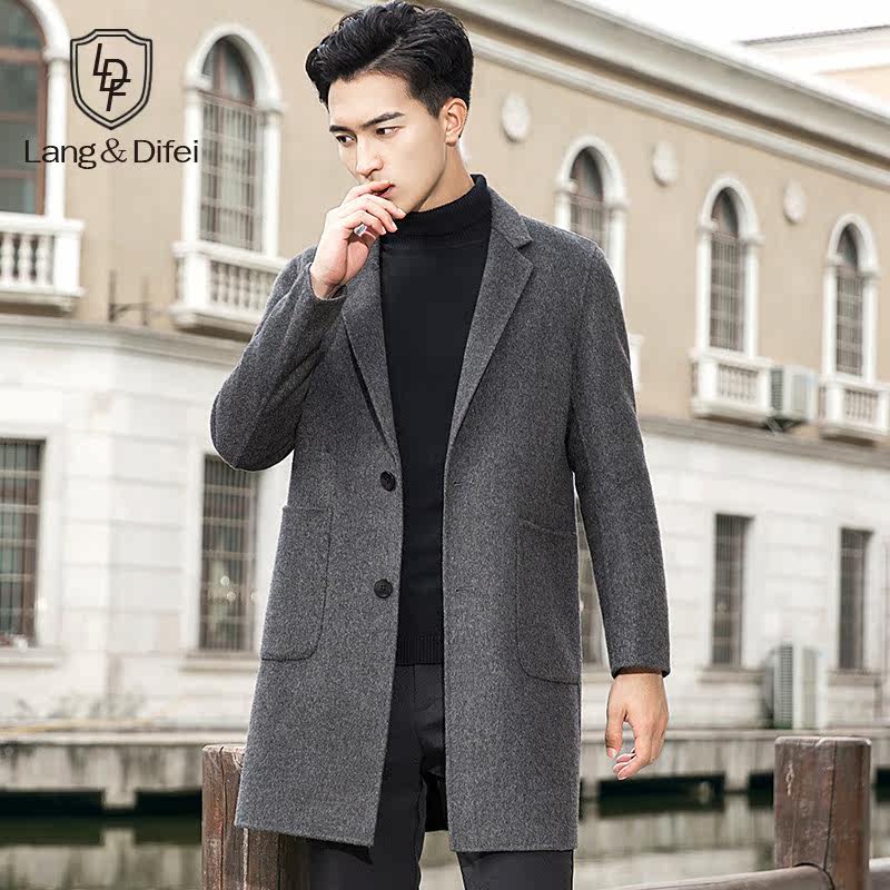 Autumn and winter fur coat suit collar double face, baby coat men's medium long version wind coat without cashmere coat men's clothing