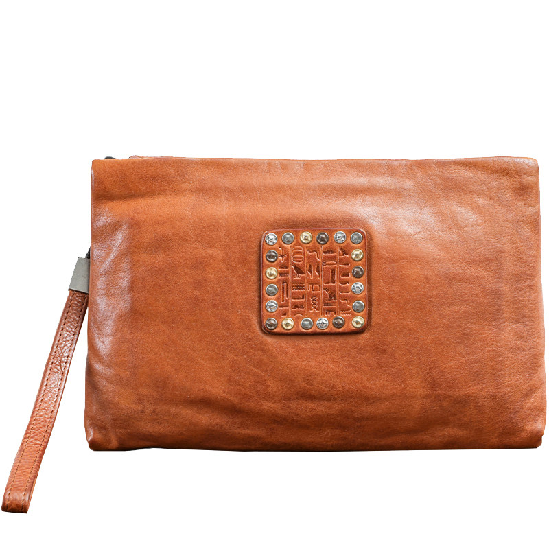 Retro-Rooted Tanning Head Layer Bull Leather Men Large Capacity Hand Grab Bag Upscale Genuine Leather Women's Hand Grip Bag Casual Wrist Bag 1