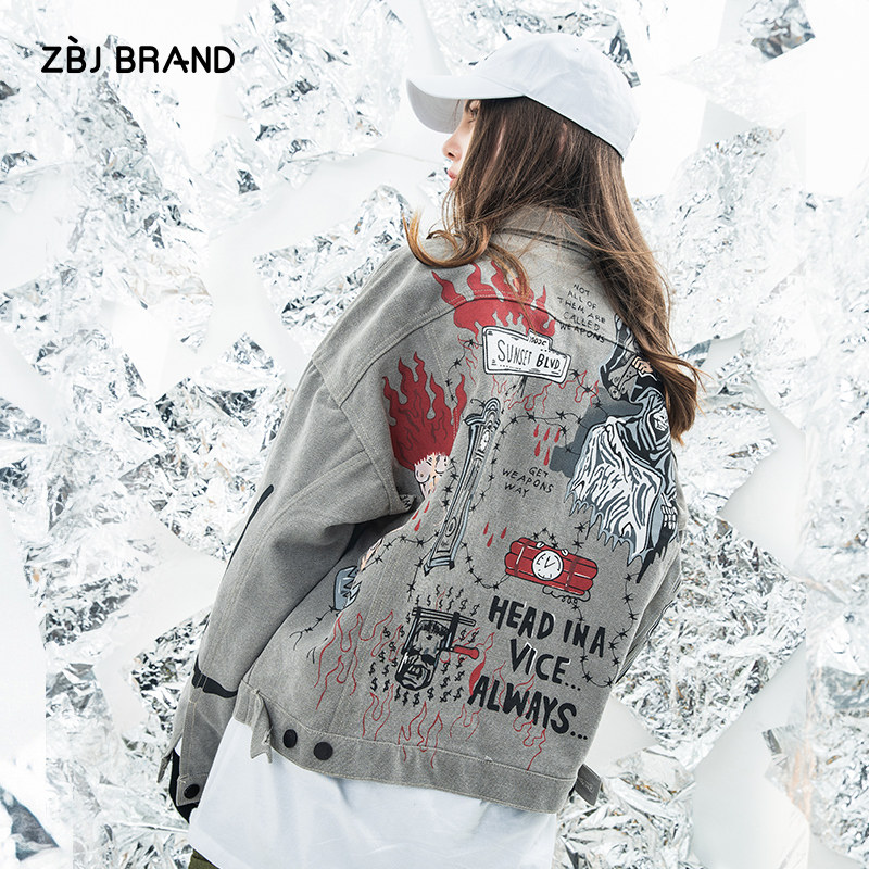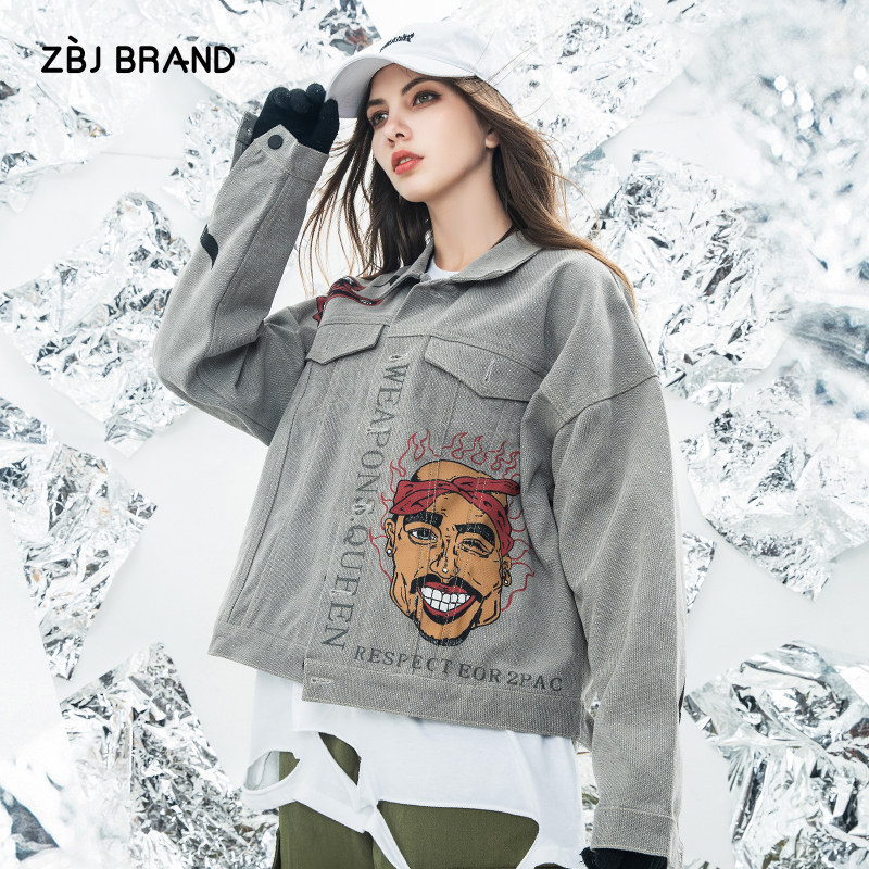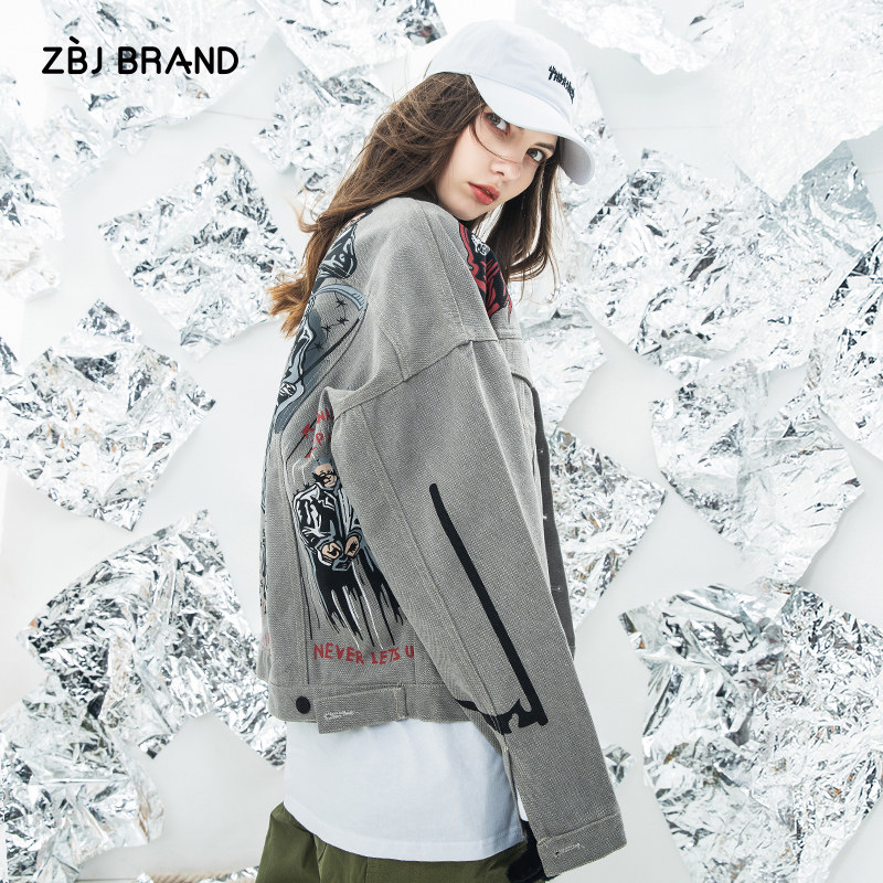 ZBJ hip hop denim jacket Hip hop trend brand bf wind denim jacket men's jacket couple national tide ins