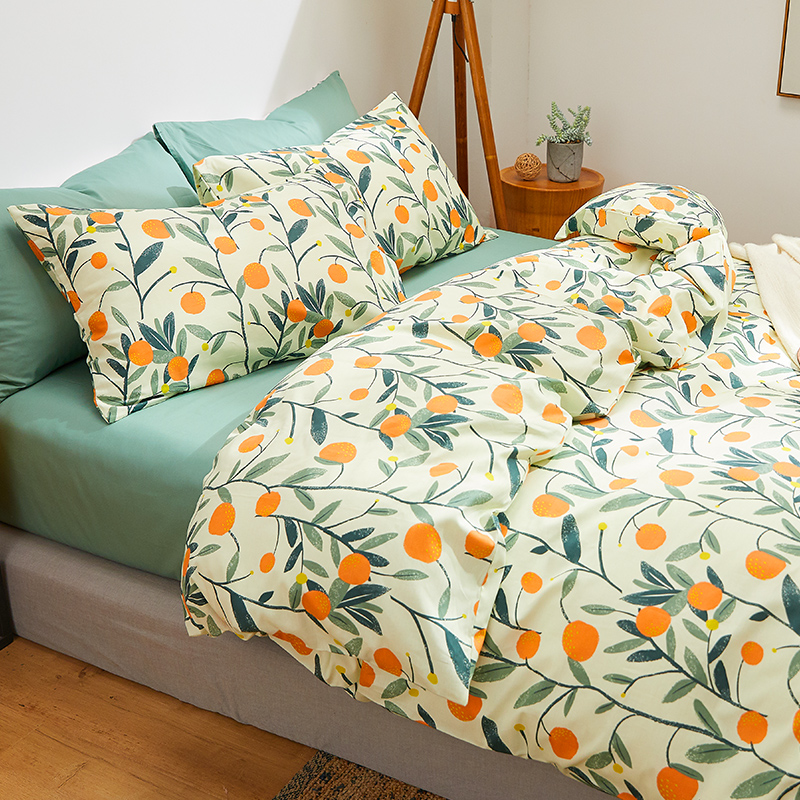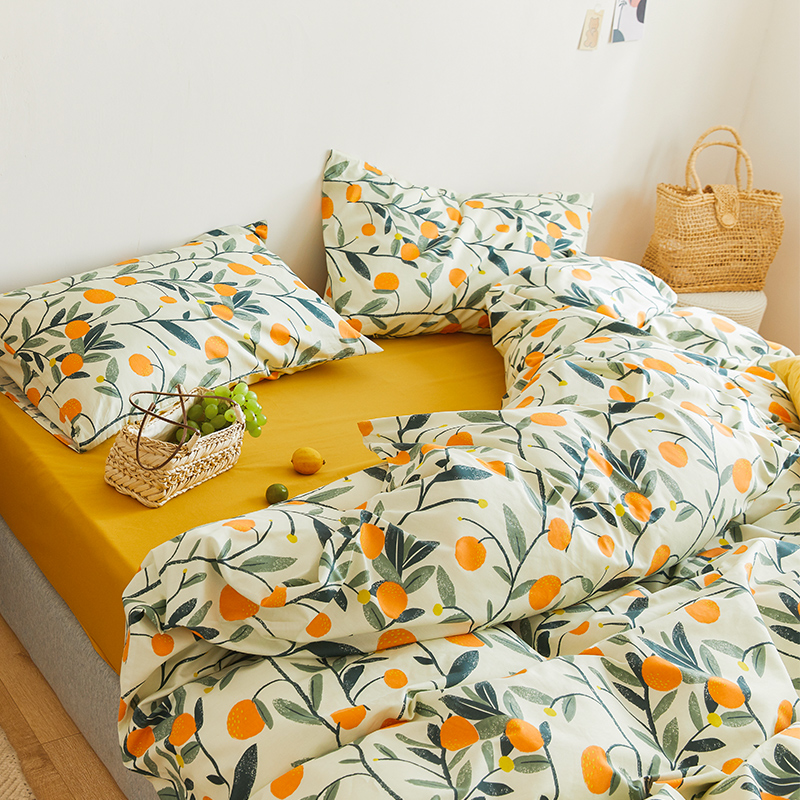 Retro Wind Pure Cotton Orange Four Pieces Beds Bedding Full Cotton Small Fresh Quilt Cover Student Dormitory Three-piece Bed Group