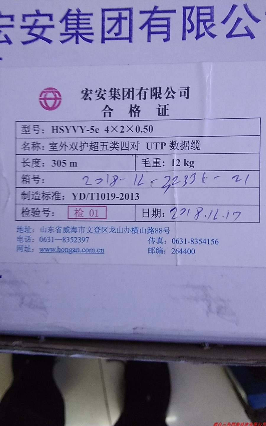 Hong'an Outdoor Double Jacket National Standard Ultra Five Type Network Wire Broadband Network Outdoor Wiring Transmission 100 m Guarantee Pass Through